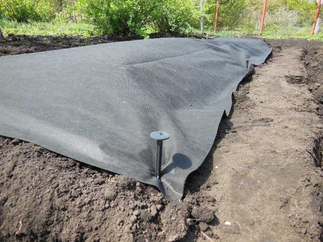 Чорно-біле агроволокно стелиться білою стороною догори.